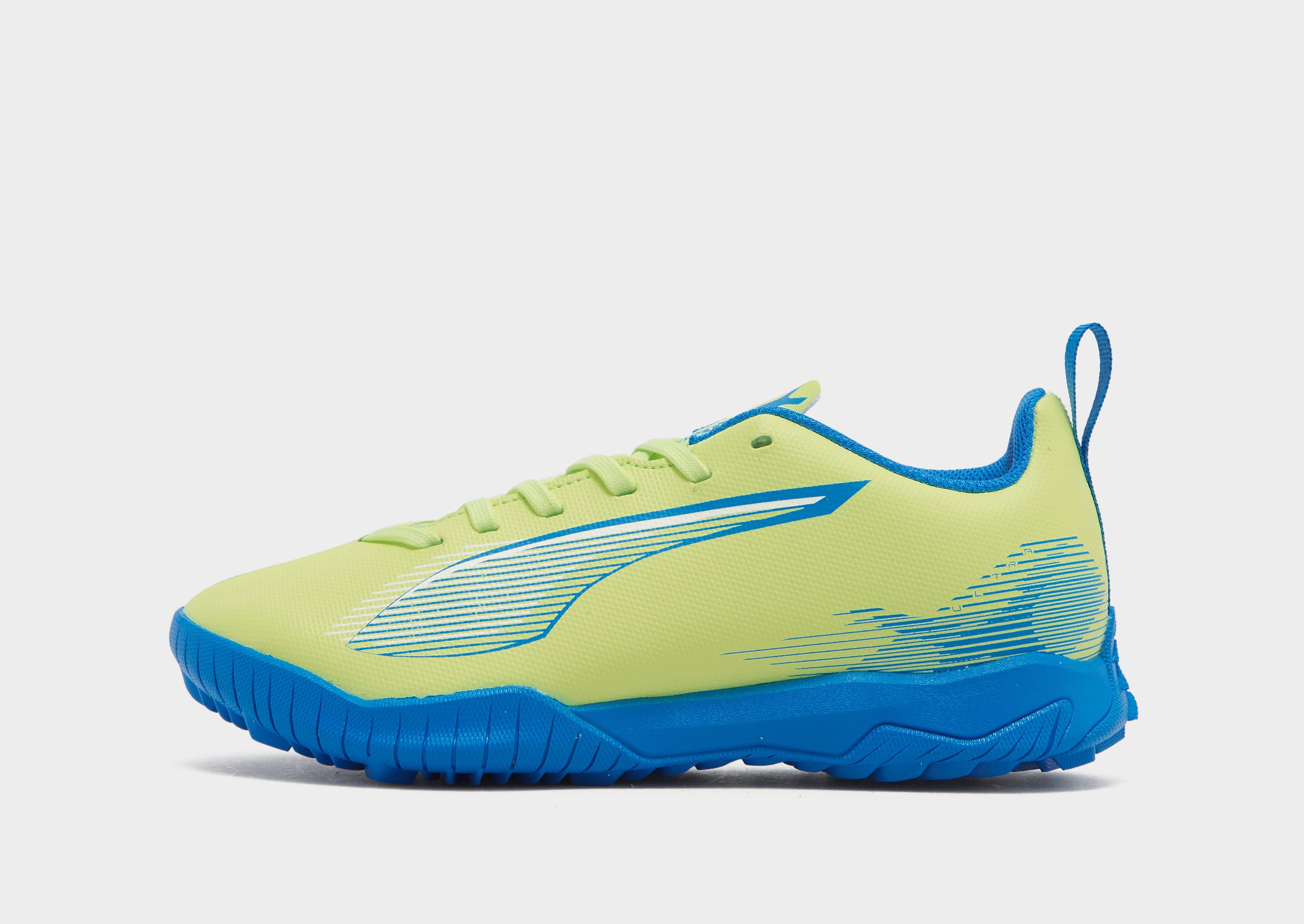 Renouvelez nos baskets de football ULTRA Play TF pour enfants de PUMA, spécialement conçues pour les jeunes footballeurs. Avec leur coloris Fizzy Apple et Bluemazing, elles offrent un look dynamique et un style sportif.